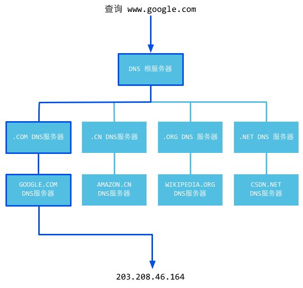 .comв нашем примере. Если первый DNS сервер верхнего уровня ничего не знает о запрашиваемом имени, он отправляет запрос следующему верхнеуровневому DNS и так происходит до тех пор, пока кто нибудь из них не узнает доменное имя. Затем DNS сервер верхнего уровня запрашивает у DNS сервера следующего уровня информацию о доменеqq.com, затем находит информацию о доменеwww.qq.comна других серверах. - Если DNS сервер является рекурсивным, он отправляет запрос DNS серверу более высоко уровня. Если DNS сервер более высокого уровня так же не знает имя домена, он продолжает посылать запрос на более высокий уровень. Если локальныйй DNS является рекурсивным, разрешенное в IP адрес доменное имя возвращается к локальному DNS серверу, который, в свою очередь, отправляет его клиенту.