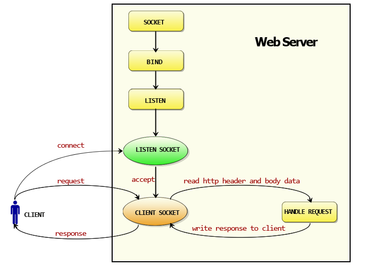 3. Handle requests, read HTTP header. If the request uses POST method, read data in the message body and pass them to handlers. Finally, socket returns response data to clients.