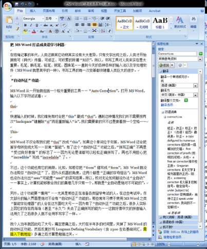 1. MS Word 2007 的 “鼠标取词” 功能