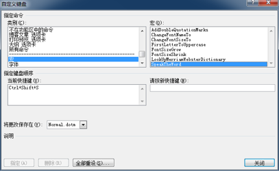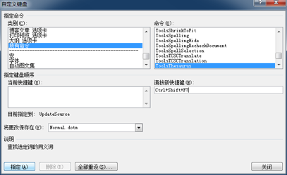 • 在 “请按快捷键(N)” 之下的输入框里点一下鼠标左键,然后同时按下 “Ctrl+Shift+F7”而后点击左下角的 “指定” 按钮,而后关闭该对话框。(当然,读者可以根据自己的喜好选择快捷键的组合方式……)