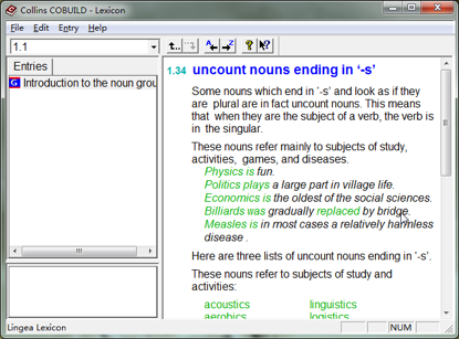 在柯林斯(Collins)词典的输入框里输入”1.1″而后回车,就可以看到词典的第一章第一节。而后可以通过工具栏上的 “A←” 和 “→Z” 图标 “前翻” 和 “后翻”。如果手中有印刷版,想要查看电子版,只需要输入相应章节号码而后回车即可。(这么好的功能在柯林斯第五版里被砍掉了……)