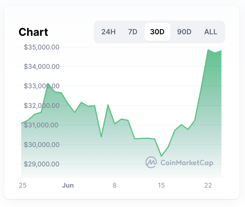 - 然后在这个整个讲课的过程当中,进入 6 月份到现在为止,我在我们的这个定投社群里一次都没有提到过这个投资标的。然后我们来看看在我们一次都没有提到投资标的过程当中发生了什么。进入 6 月份之后,有一段时间可能长达两周还多的时间里,一直在阴跌,对,跌,跌跌跌,然后涨回来一点,又跌回来一点,涨回来一点,又跌回去更多,对吧?然后涨回来一点,突然时间某一天就比特币向上了11%,最到最多的时候,对吧?然后就一天之内所有的跌幅全部收回。