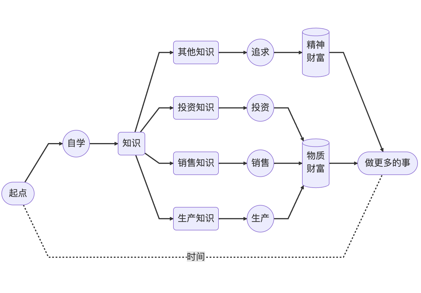 - 所以其实等于说,哈,第二本书就出现了,就是什么呢?第二本书就是叫逻辑的真相,也是我们未来在社群里我可以讲给大家听的就是我们的一切思考都是有一定模式可以追寻的,一定的框架,对普通人来说就已经足够用了的。大概第十几节课, 20 节、二十几节课能把这个事讲得非常清楚。然后现在这个最终的定稿财,时间与财富其实就相当于是这段时间里我写的第三本书了,对吧?这一版我是可以直接交给这个出版社,目前已经这个有了一定的反馈。这张插图基本上就相当于哈是时间与财富资本书的哈一个概括和总结,就是到最后我们人生一切的财富,不管是物质财富还是精神财富,其实都是从时间里挖掘出来的。时间是我们这一生可以遇到的唯一公平且唯一终极的生产资料,这个是有一个简单清晰的逻辑推理过程的,非常简单,然后非常清晰,无可辩驳。然后不管你生产什么,投资什么,或者是说销售什么,甚至去追求什么,那其实都需要知识,然后这些知识最好是自学而来的,因为外面的学校也真的不教你。