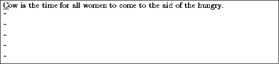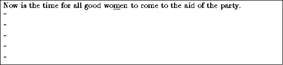 $key = q/{}fboxminipage0.8textwidthunderlineNowisthetimeforallgoodwomentocometotheaidoftheparty.~~~~~minipage{}/;