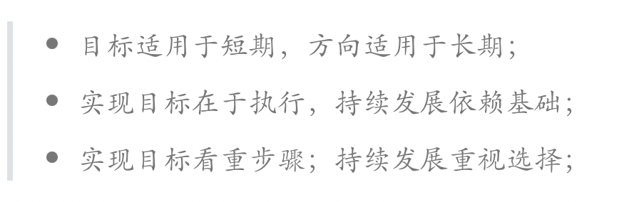 所以你通过一个人更看重什么,你就能够明白他究竟是更倾向于是设计论者呢,还是更倾向于发展论者。 而我们呢也知道了啊,我们要选择成为发展论者。 当我们制定目标实现目标的过程哈不可能是无限长啊,对吧,懂得直面困境的。 我们早就知道意外必然存在。 所以呢实现过程拉的越长,这个计划就越不靠谱。 目标就越难以实现。 所以呢短期目标是合理的。 长期来看的话呢,不能靠设计目标,而是要靠发展的。