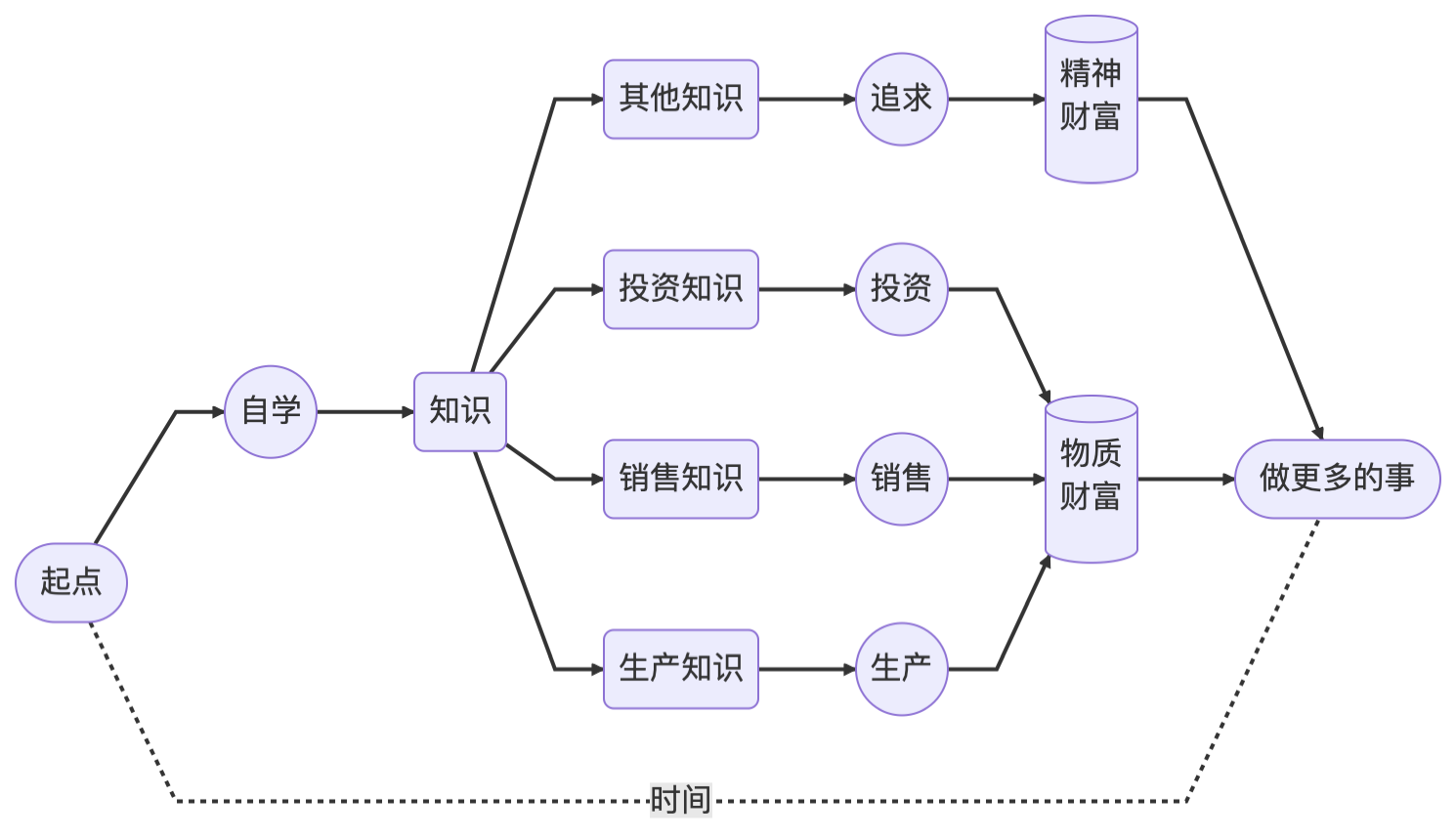 给大家发的这个这张图啊,就是财富的真相当中呢,其实有很多示意图的那示意图呢其实有很多非常重要的,这个是比较重要的一个啊那这个示意图哈讲的是什么呢? 其实我们的一生啊,所有的财富,无论是物质财富还是精神财富,最终呢都是从我们自己的时间里挖掘出来的。 大家看哈从起点到后面叫要做更多的事啊,没写终点哈。 那贯穿的一致贯穿的啊,就是时间这个要素在最底下那个虚线。