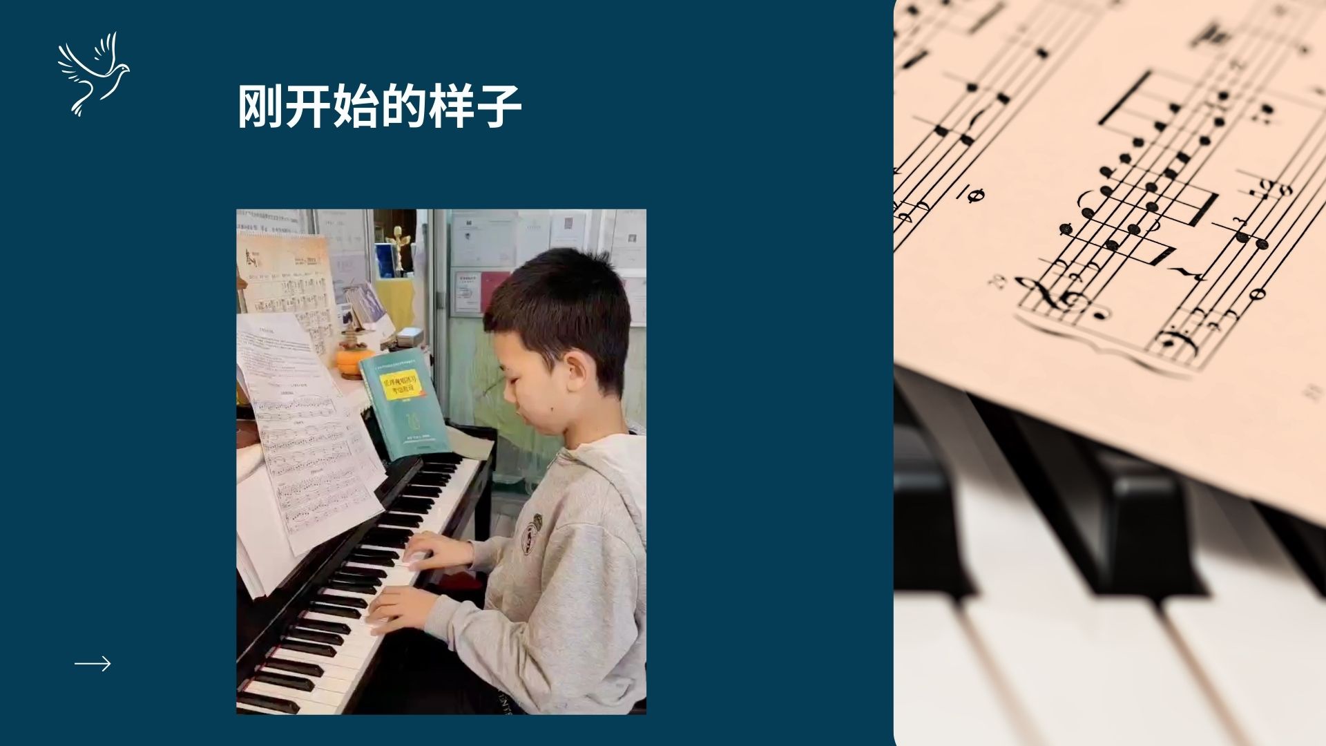 慢慢的,孩子从每天只能坐住半个小时到一点点增加到了4个小时,3个月下来其实进度并不快,也就谈了这首曲子的一半多点,而且还有很多细节需要处理。 但这看似进展缓慢的3个月却非常重要。 他建立了孩子的信心,而且慢慢喜欢长时间练习。
