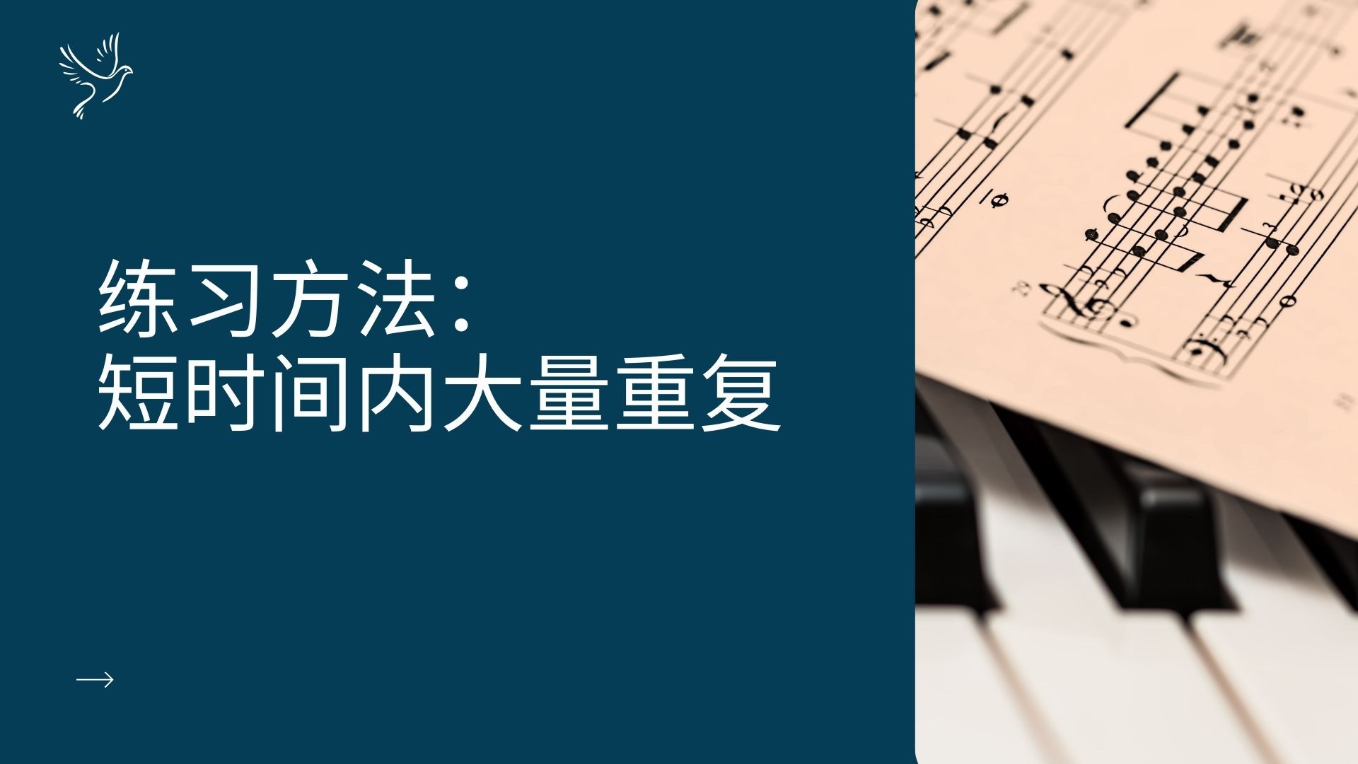 那几个月每天不求多,只练习一小节,一小节先分开左右手练习,都是500遍起步的这种练习。 不行的话,就再来几百遍,每只手都练成了肌肉技艺,就再合起手来练,练好一小节,再练下一小节,两小节都好了,就再串起来练,这其实是在践行校来老师定义的努力,短时间内大量重复,。