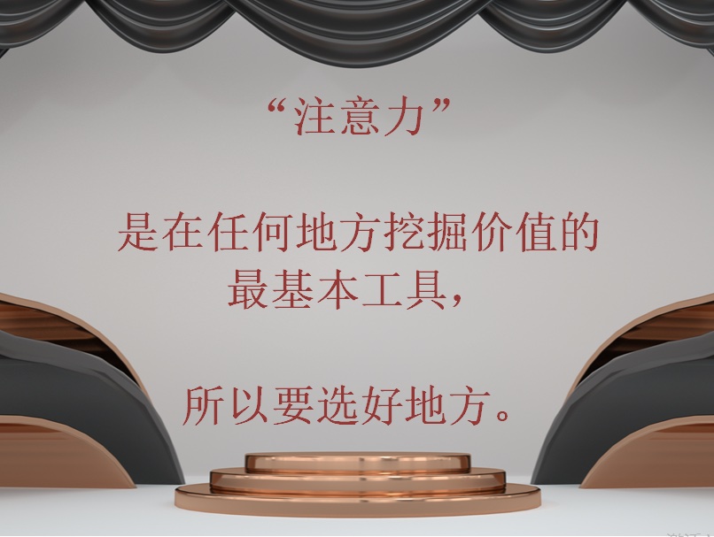 我人生的巨大改变是,2016年有幸在得到平台通往财富自由之路专栏,遇到了校来老师。 校来老师在专栏提到关于注意力这个概念。 注意力是我们唯一可以随意调用,且能有所产出的资源。 注意力是在任何地方挖掘价值的最基本工具,所以要选好地方。 。