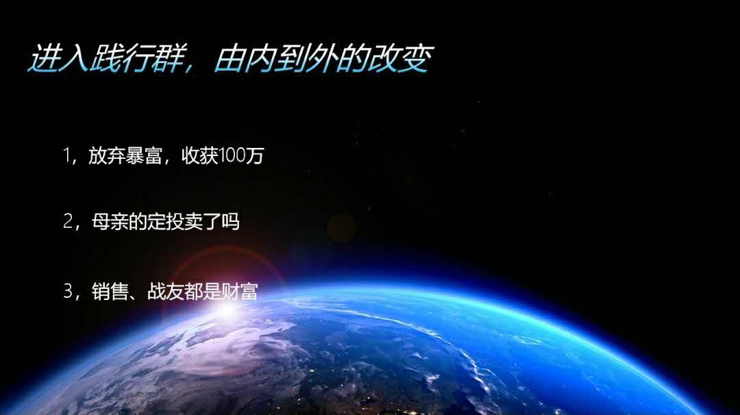 最后做个总结,回到开头,战友,你现在明白为什么我羡慕一开始就加入建新群的你了吧? 进建新群前,我遇到了胡乱买卖、短线操作,搬砖扎角,欺饿合约血亏的坑,进入建新群,不仅心态开始变好,也开始做正确的事,而不是把事儿做正确,收获了好的投资收益,销售也渐入佳境,还结识到让我不得不努力的战友 。