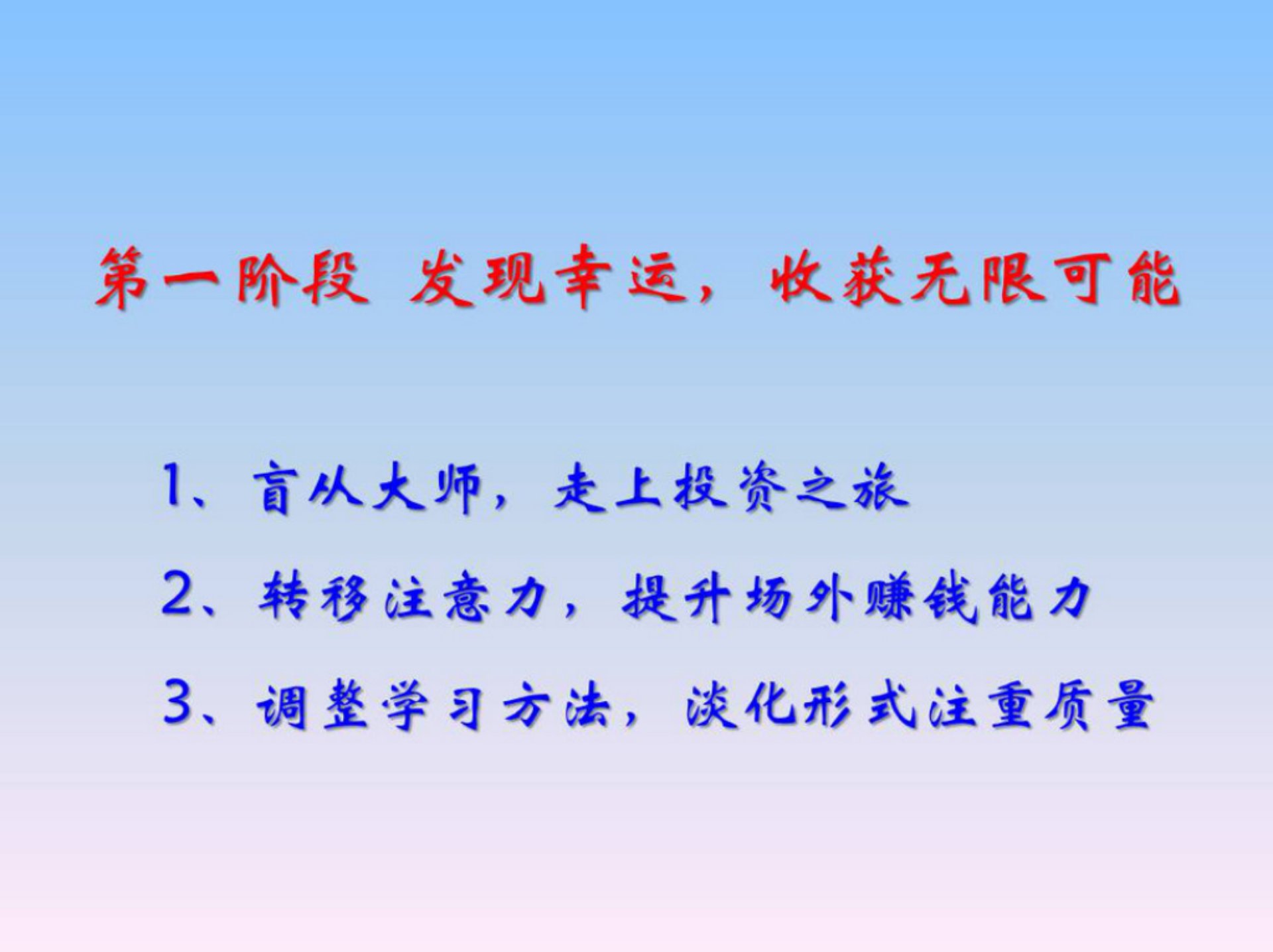 大家好,我是109班的张丽华,感谢倪肖环老师和苏珊老师的邀请,与大家分享我在定投人生课堂的成长分为三个阶段。