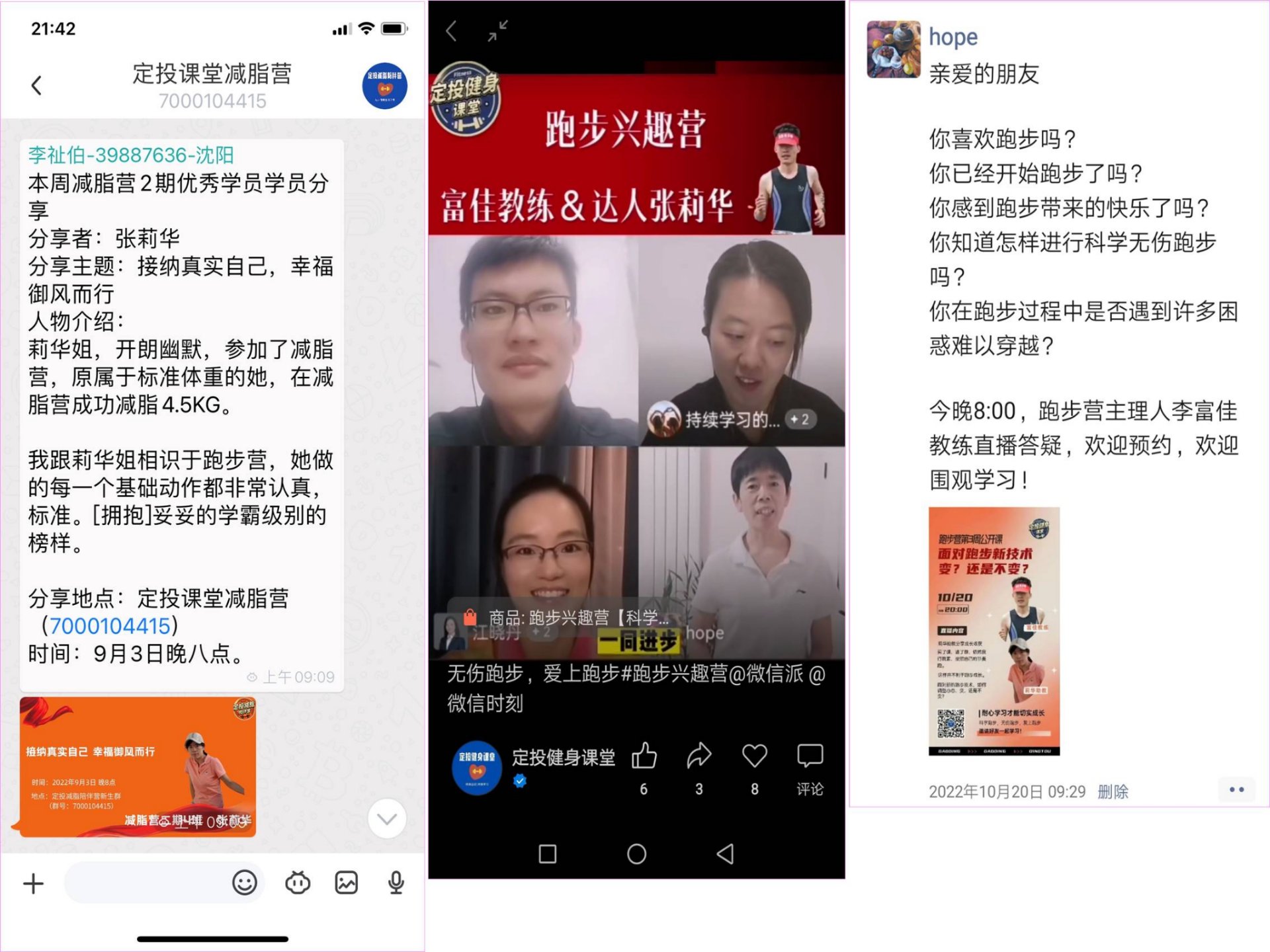 2、朋友圈始发生迎来意外收获。 我本身不喜欢,也不擅长销售,但是像跑步兴趣营这样好的产品,我真心认为许多朋友都非常需要,尤其是像我这样的,因不良跑姿导致身体伤痛,影响享受跑步乐趣的人极其需要他。 我特别想把他推荐给需要的朋友,又担心有推销嫌疑,心理负担很重,几经挣扎后,我决定从朋友圈开始尝试。