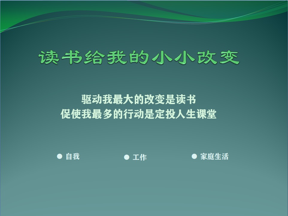 我做的事情并不多,只是一本书一本书的阅读,只是将定投融入在自我工作、家庭生活中,都只是在践行定投人生课堂的读书健身,投资,帮朋友陪家人而已。 以前我还特别抱怨我的原生家庭环境。 现在我很开心有这么低的起点。 因为这样我的进步空间可以巨大。 。
