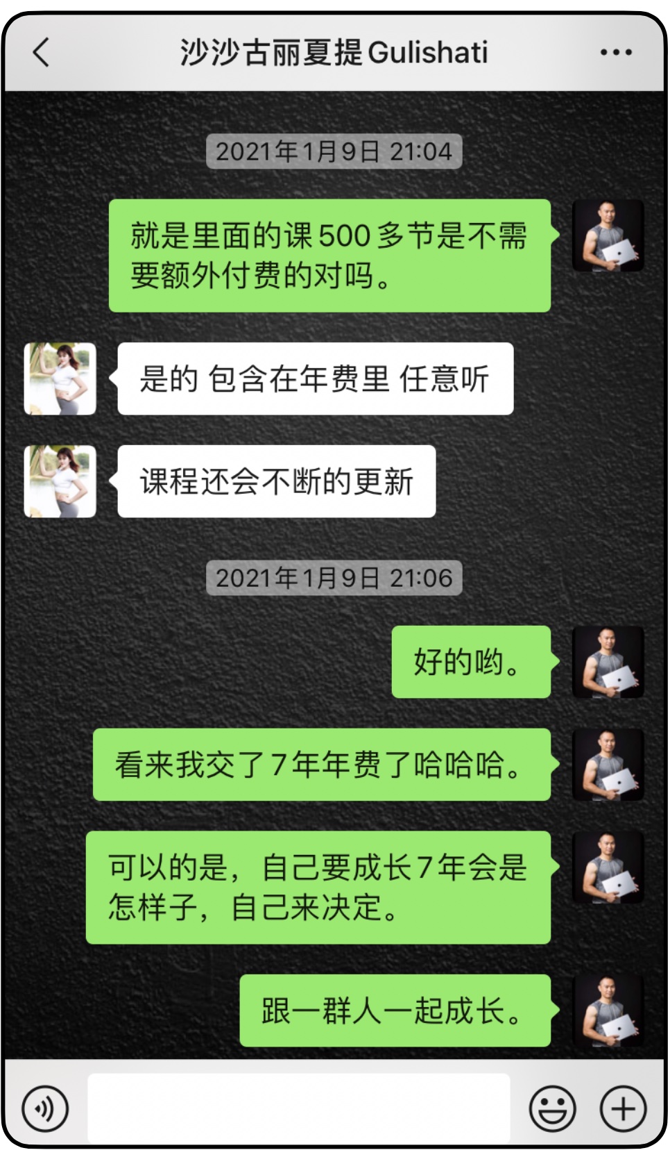 从另外一个角度来说,这也是校来老师的个人品牌的影响力。 由此可见,好的个人品牌是多么的重要,让跟校来老师素昧谋面的,但也深深受到了正面影响的。 我可以笃定的向他付费学习7年。