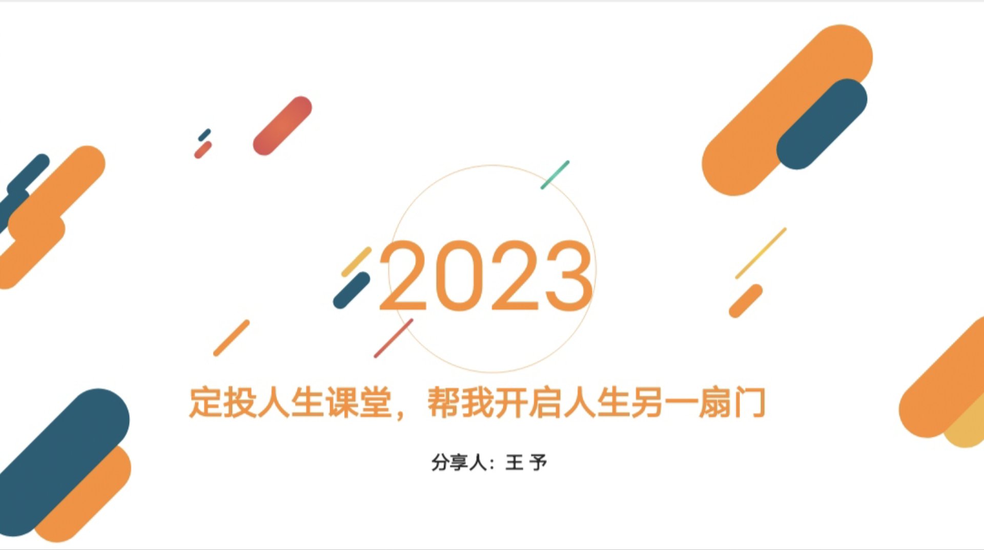 非常感谢104班李青班长的推荐和苏伞老师的邀请。 今年是大年29,我很荣幸能够在这样有纪念意义的一天为大家分享,提前祝校来老师和定投人生课堂的战友们新春快乐,平安吉祥。 在新的一年里,收获更加稳健扎实的成长和内心稳稳的幸福。 今天我要分享的主题是定投人生课堂,帮我开启人生另一扇门。