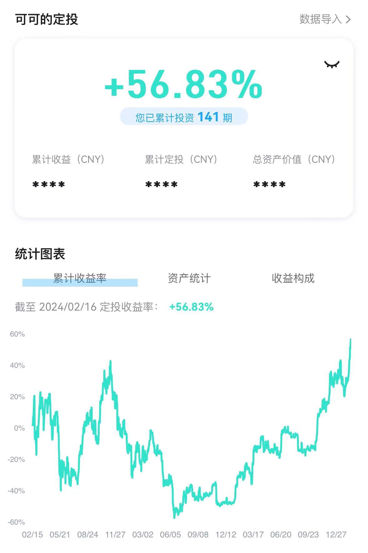 当工作室的发展稳定之后的话,我就跟自己讲,可以重新部署投资这一块了。 这个中间还有一个小插曲,我一直以为自己的密码,忘记了。 当时排查了非常多的密码都不对。 但是其实呢我是从来没有设置过密码,因为这个原因呢,我一直拖到了2020年的11月才加入了进行群,我直接续费了7年不让自己掉队。 这次又是牛市,就是玩好了想是给自己更多信心,网不好了,想呢,又没有在形事多积累。 但这些呢都不重要了,定投是长期的事情。 我给我的女儿可可也弄了一个独立的账户。 我的妈妈也有一个账户,去年呢生了小宝团团,给团团也弄了一个账户。