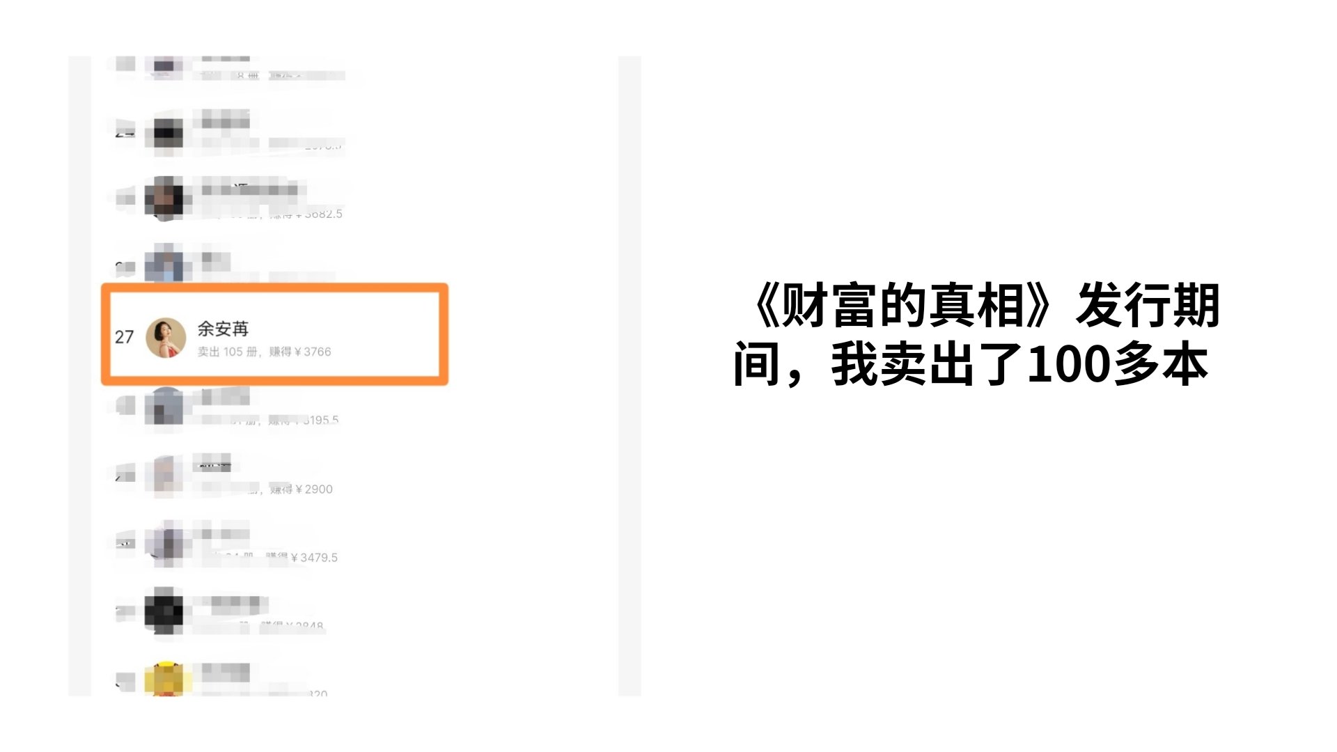 同时,在向来老师新书财富的真相发行期间,我第一时间抓住机会,通过被动销售的方法卖出去了100多本向来老师的新书,自己没事儿,经常打开销售数据的后台,看着自己的销售排名,在屏幕面前偷着热。 直到现在,陆陆续续还有不少陌生客户主动来找我咨询和购买。