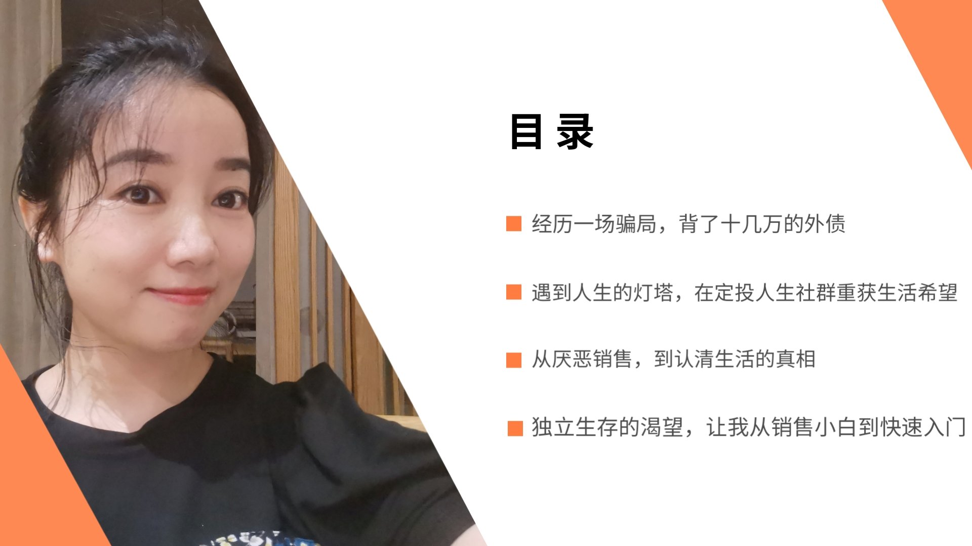 从一个对生活失去信心、心态和财务都深陷深渊。 到现在,对生活充满热爱,从对销售反感的职场底层到掌握销售技能,财务状况越来越好,链接到优秀的伙伴和老师好运接踵而来,。