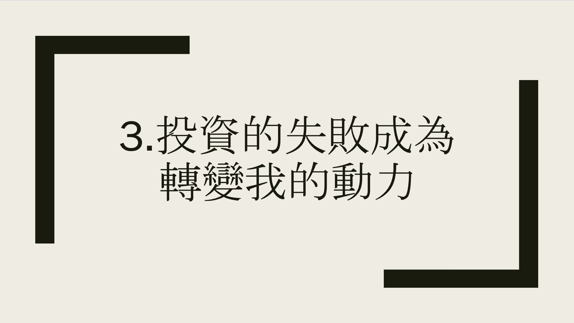 后来呢他开了一个小型的投资课,主要是教人要如何独立思考。 我跟我的男友每个礼拜六下午都会去上课,有时候请假,他还会特地帮我们另外找时间补课。 但在同时呢我常常在网络上看到各式各样各种的投资大省,每看到一种新的投资方法,我就想要去学,找聘各种方法去试。 但是呢因为我学而不精,然后常常光说不练,最后呢在2012年到2015年这四年期间,我还是每年定期不定额的在赔钱。 。