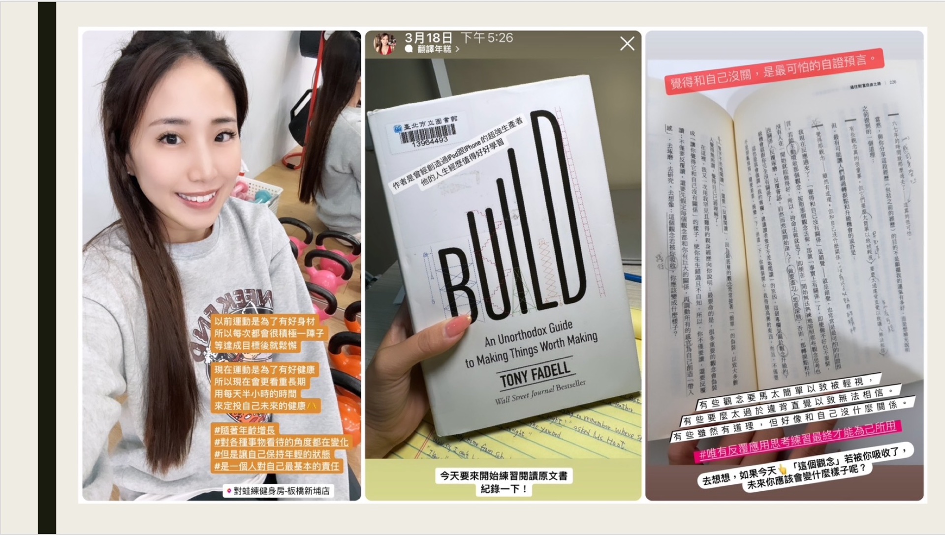 从2020年到2023年,我就一直在社群里跟着校爱老师学习,只要老师讲课,我都会去听,所以也知道个人品牌的重要性。 我跟我老公在2010年的时候开设了自己的youtube频道AJ秋是夫妻。 另外我们还创业两个事业,一个是黑玩嫩仙草饮料店,跟另外一个对外链健身房。 但是说真的,近几年我们还是过着相对安逸的生活。 我基本的重心都放在孩子的陪伴跟教育。 把我的时间用来研究怎么教育孩子怎么陪伴孩子成长。 但说真的,我常常越看越焦虑,总是觉得自己哪里做的不够好,缺少了什么。