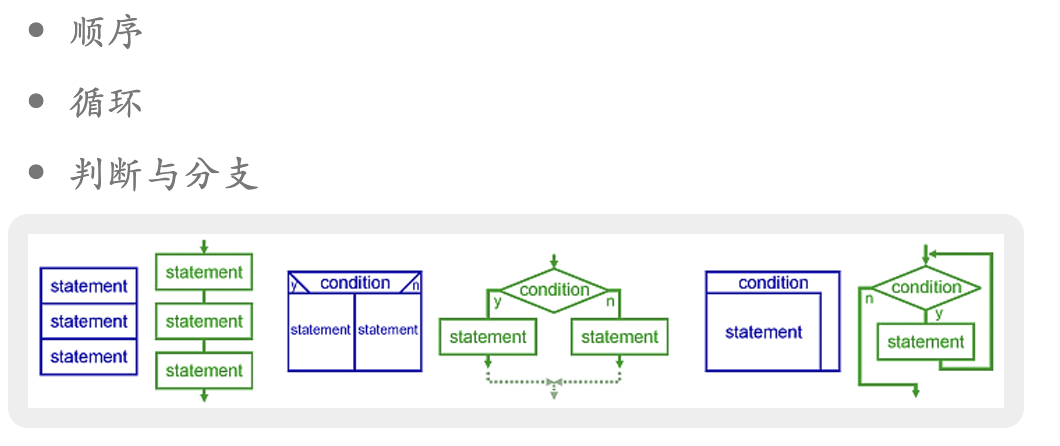 天下所有的程序啊本质上都是以完成任务为目标的流程管理。 而天下所有的流程啊都可以由以下三种模块构成啊,这是一篇哈特别著名的论文啊,1966年出版的论文当中啊提到的被科学计算机科学家们哈啊成为所谓的结构化程序定理啊,结构化程序定理。 那三种模块呢就是顺序循环和分支。 那为了分支呢就要先做判断,对吧? 所以第三个呢叫判断与分支,对吧? 那我们简称分支啊顺序循环分支对吧? 这三个模块呢啊能够构成天下所有的流程,也就是说天下一切的任务的执行流程,都是由这三个模块构成的。 那你来看,所谓的习惯最复杂,也不过是顺序连接,所以本质上来看。
