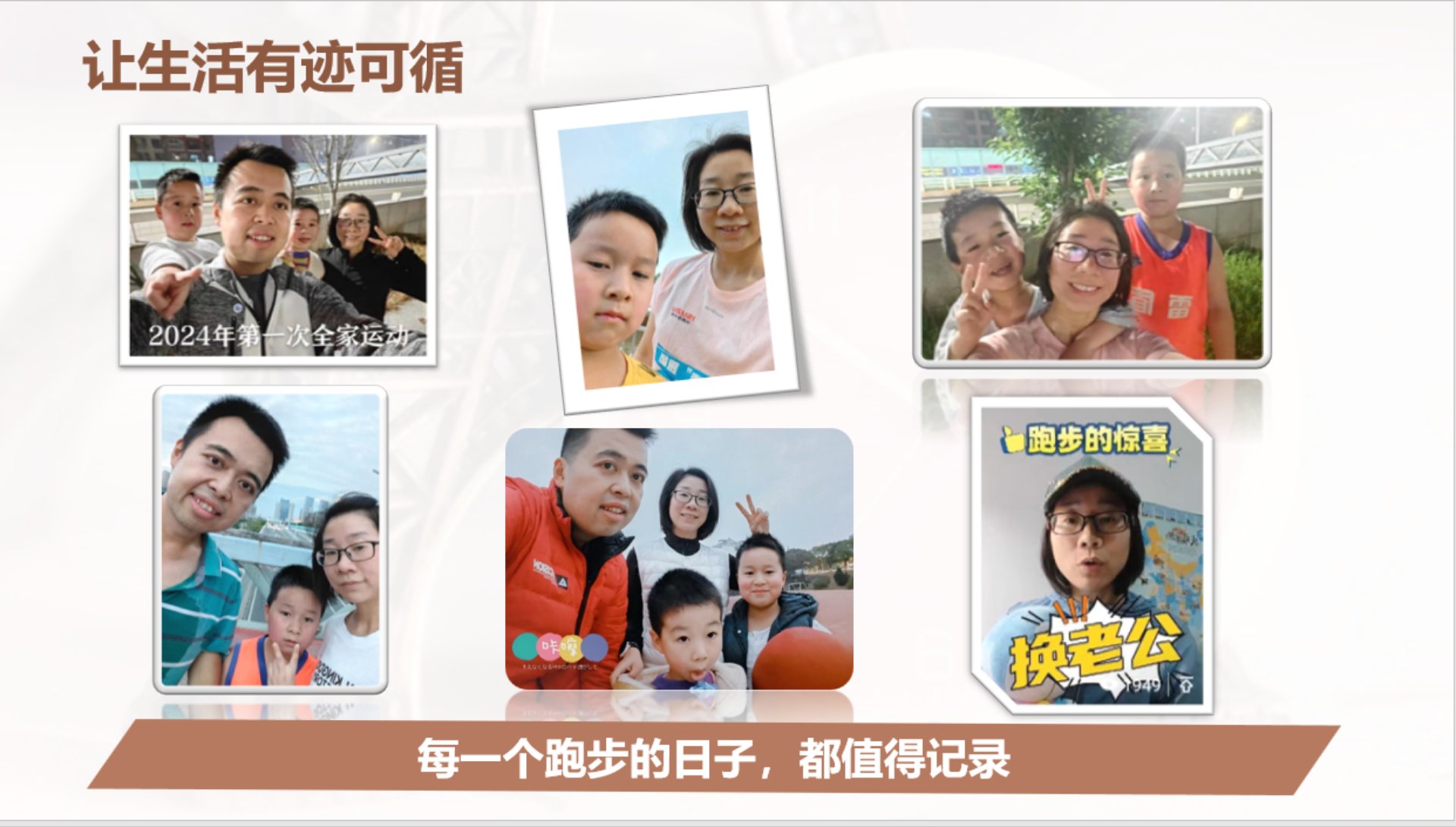 今年我们开始尝试带着孩子一起运动,这里有一些运动后我们拍的合影。
