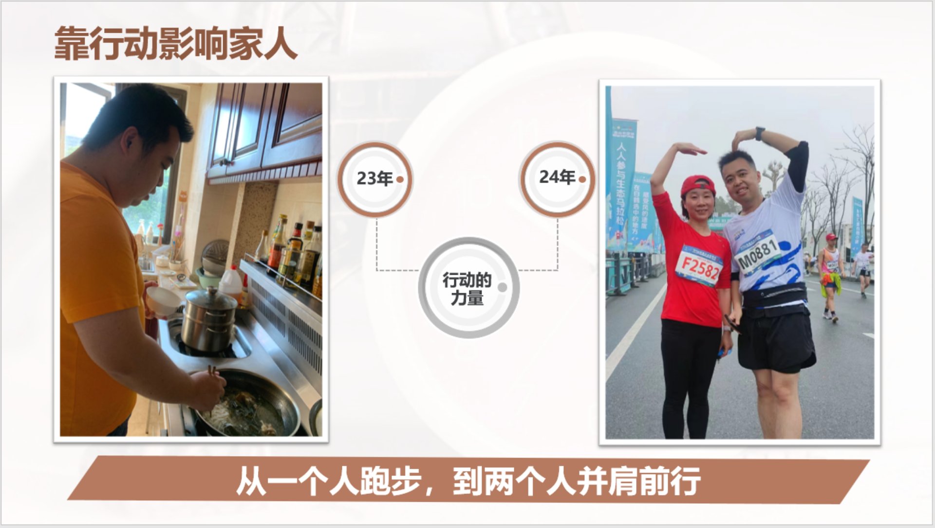 这个视频是他当时瘦下来后剪辑的,可以感受一下胖子到瘦子的华丽转身,他也让我亲眼见识了身边的热辣滚烫。 我从原来一个人跑步到现在和他并肩前行,跑步让我们相处的时间更多了,作息也变得更加规律,夫妻的感情越来越融洽。 。