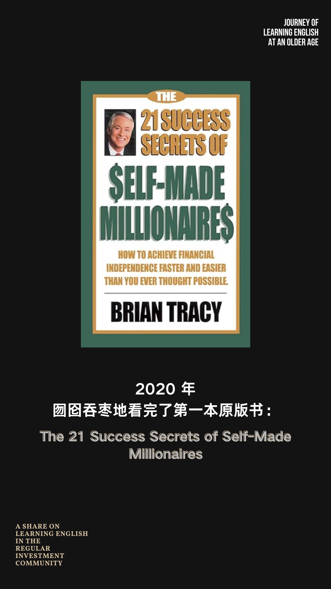从每天背 10 个单词,到每天背 50 个单词,背了又忘,忘了又背。折腾到 2020 年,我终于看完了第一本原版书,《The 21 Success Secrets of Self-Made Millionaires》——哪怕是用词、语法、句子非常简单直白、通俗易懂,就是写给没文化的大众看的,我也花了不少时间