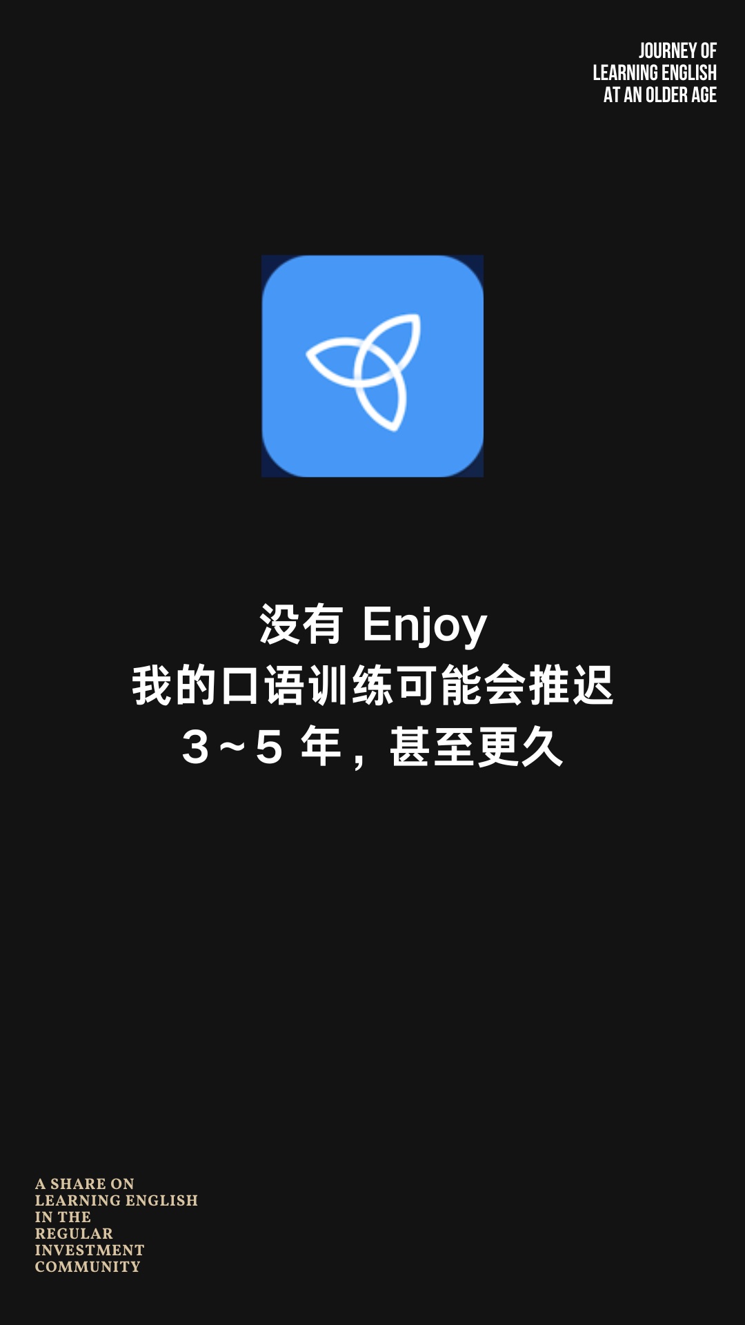 家好,我叫程跃,因为文韬老师在社群中推荐了我的视频《高龄英语学习之旅》,因此才有机会在这里给大家分享使用 enjoy 学习口语的一些感悟。感谢Susan老师的邀请和鼓励,记得半年前卞卡大哥让我做分享,我说没啥好分享的,一是比较内向,二是确实惭愧,我就是个装成学霸的学渣而已。 Susan 老师的热情邀请使我鼓起勇气在此分享。