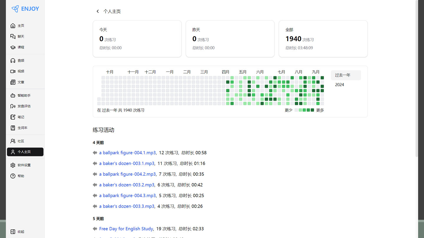 不过在我590多个小时学习中,我也有焦虑,有迷茫,有怀疑,有因为不进步而困惑难过,有时候也会怀疑自己这样练习是否正确。 也有不想练习的时候,每当有这种情况的出现,我就会反复的听校来老师多语教程。 现在在我看来,多语教程中的每一课,几乎都是心理建设课程,多听一直听,直到听到你迫不及待的想打开enjoyAPPAPP开始练习的时候。