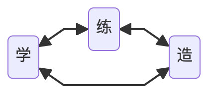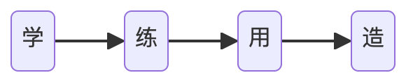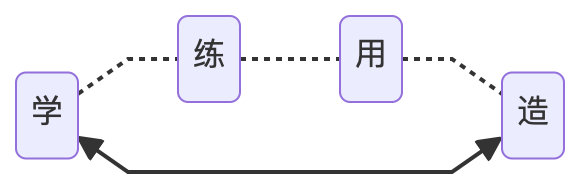 关于与学习相关的四个环节,学练用造啊,我们社区里的同学呢也听我从各个角度阐释了无数遍了哈,所以我在这里就不重复了。 那么在过往的一年多的时间里面,我呢从方方面面都变成了人工智能的重度用户啊,这也是为什么我现在跟大家分享的原因啊? 然后在这个过程当中呢,我其实对整个学习的流程的看法再次发生了个巨大的变化,甚至叫做颠覆,啊,真正的颠覆。 现在呢我认为说一切都应该围绕着造啊,学练用造的最后一个环节造啊,或者说干脆只留下一个环节,其他的都可以成为背景,对吧? 好了,我的意思是说,一切都应该围绕着最后一个环节造去展开。