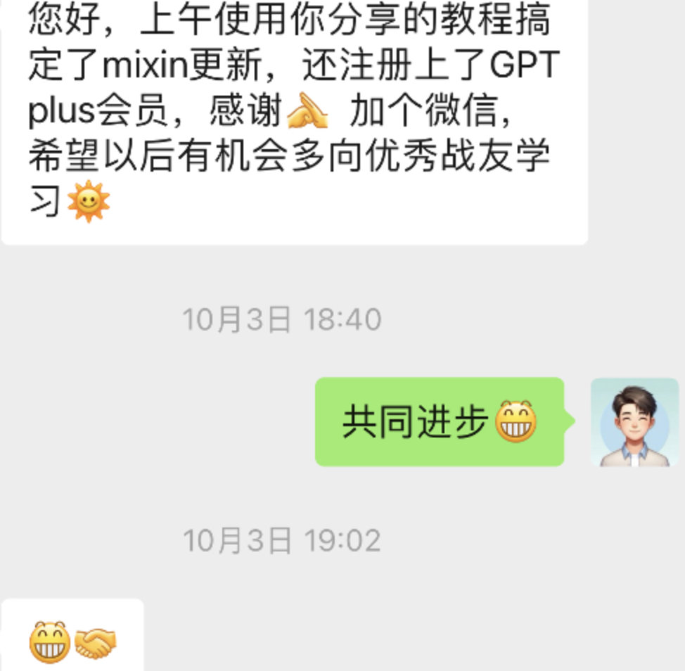 在社群举办的线下课程,我都得到了一个可能性,就是把做自己这件事情能够做成一门生意。 这个可能性再一次涉及到了个人品牌进一步确定我主动帮助社群同学,这件事情是有价值的。 而且是商业价值。 当夏老师讲到了人工智能课的时候,我就知道有很多社群的同学卡在网络问题上,账号问题上。 那么此时帮助同学的机会又来了。 不过这件事情并不是重点,更为重要的是帮助社群的同学真正的去用上人工智能,还不仅仅只是拥有账号而已。 。