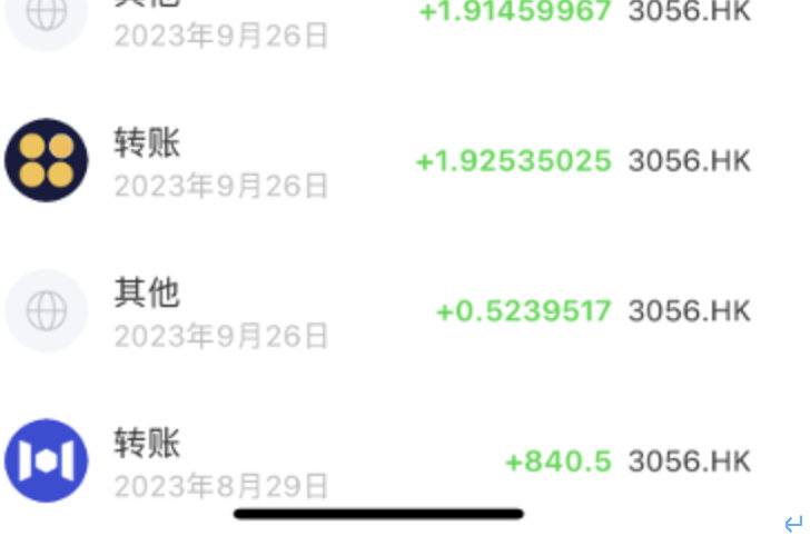 后来在23年的8月份,我得知了3056和3112,在密信上呢买了3056,当时的价格约为10港币,现价为16. 4港币。 同时我在密信群中也看到了一个信息,这信息是零成本的去办理海外卡,我就立即去检索,然后就办理成功了。 于是在今年我又买了3056和3112。 现在的综合收益率是50%。 。