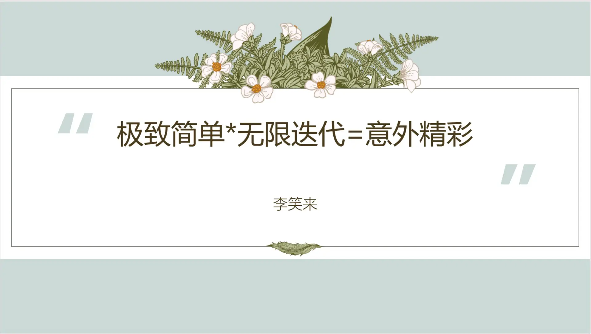 第四幕,收获,夫妻携手,迎接未来。我相信肖老师说过那句话,就是极致简单,乘以无限迭代等于意外的精彩。