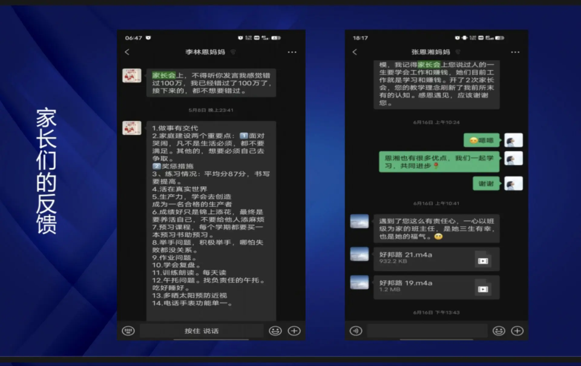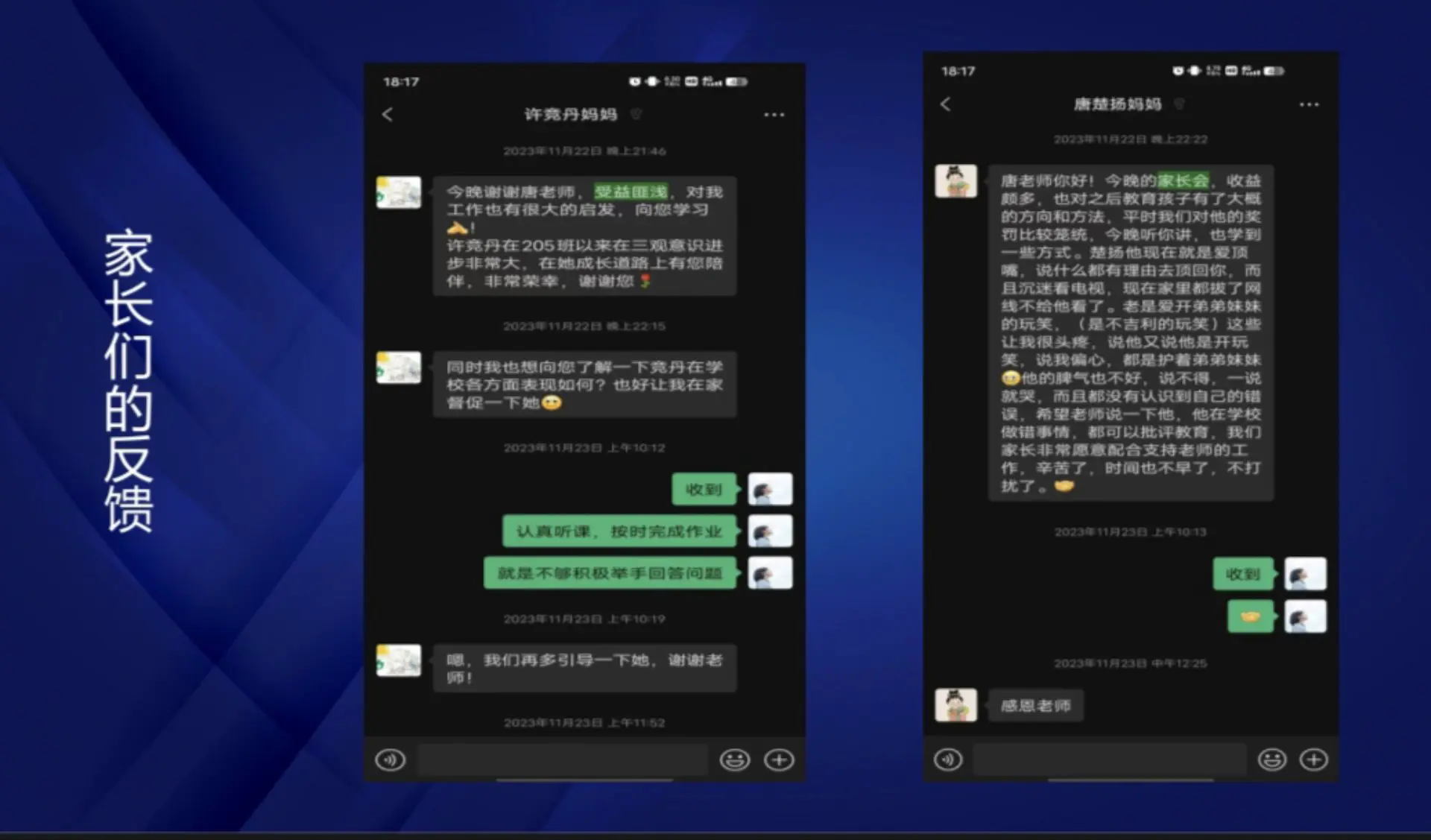 家长会上,我会跟家长们一起学习校来老师的家庭建设课,比如哭闹可能是一件很大的事,奖惩机制的进一步思考等等。家长们反馈很受用。下图是家长们的一些反馈。