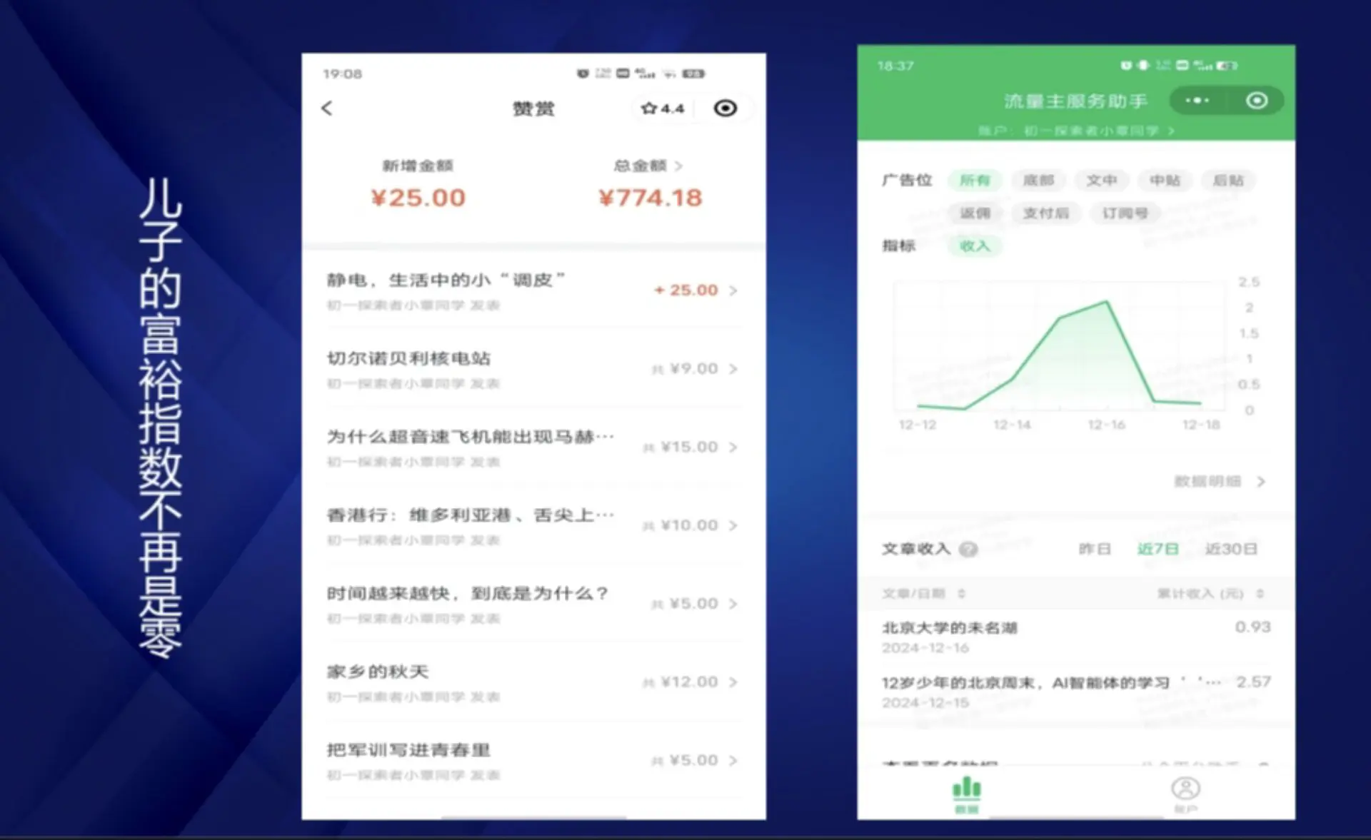 智能少年团队除了给秦永佳的学习限谋献策外还要求他写公众号。目前他已经积累了500多粉丝开通了流量组他的富裕指数不再是零了。