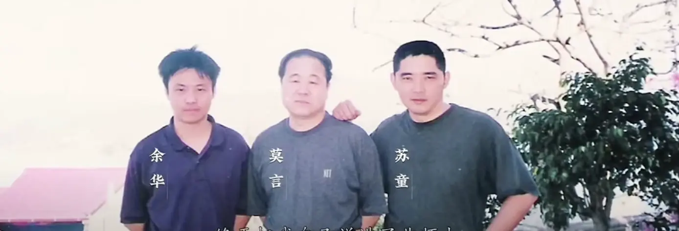 当然了哈许多年之后呢,嗯这个这个作家啊余华现在已经成了网红余华,对吧?啊,他跟他的这个老伙伴哈,这个莫言一样哈,很注重啊在网上的这个呃形象和流量提升啊,这也说明他们真的是在与时俱进,对吧?当然了大家有没有注意到哈,其实呢呃牛人都是成群结队出现的对吧?啊,呃莫言啊、余华呀嗯这个苏童啊啊他们都是这个这个一伙的。