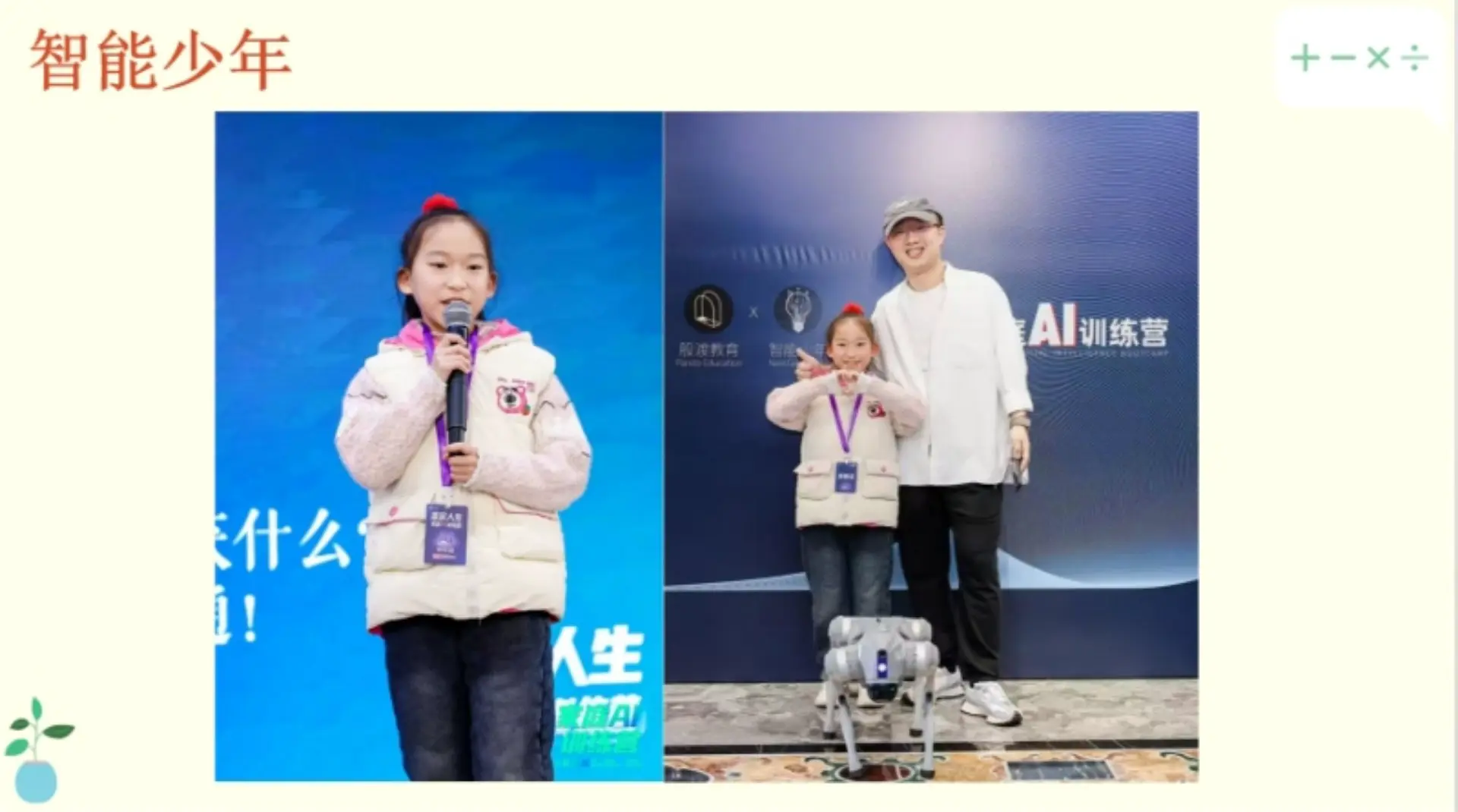 3、关于智能少年之前在茶话会听到佳明童童大招施雨的分享,心里忍不住的想,哎呀,我家娃啥时候也能这样啊。所以北京线下会呢,我坚定的带着娃一起来,就是想让娃靠近这些优秀的小伙伴。现场文涛老师教小朋友制作AI智能体,并指导孩子们用deep seek进行跨学课的学习,看到这样的场景,你会有一种强烈的对比,就是当有的家长还在卷分数给孩子报各种补习班。有的家长已经在智能少年的帮助下,让孩子自学生产。于是呢我就给孩子报名参加了智能少年,3万块钱存到银行三年的利息,也也只不过是1000多块钱,而报名智能少年是用3万块钱给孩子一个接触AI通过使用AI自学生产的机会。他带来的改变绝对不是一个点,而是一个面或者呢是多个面。