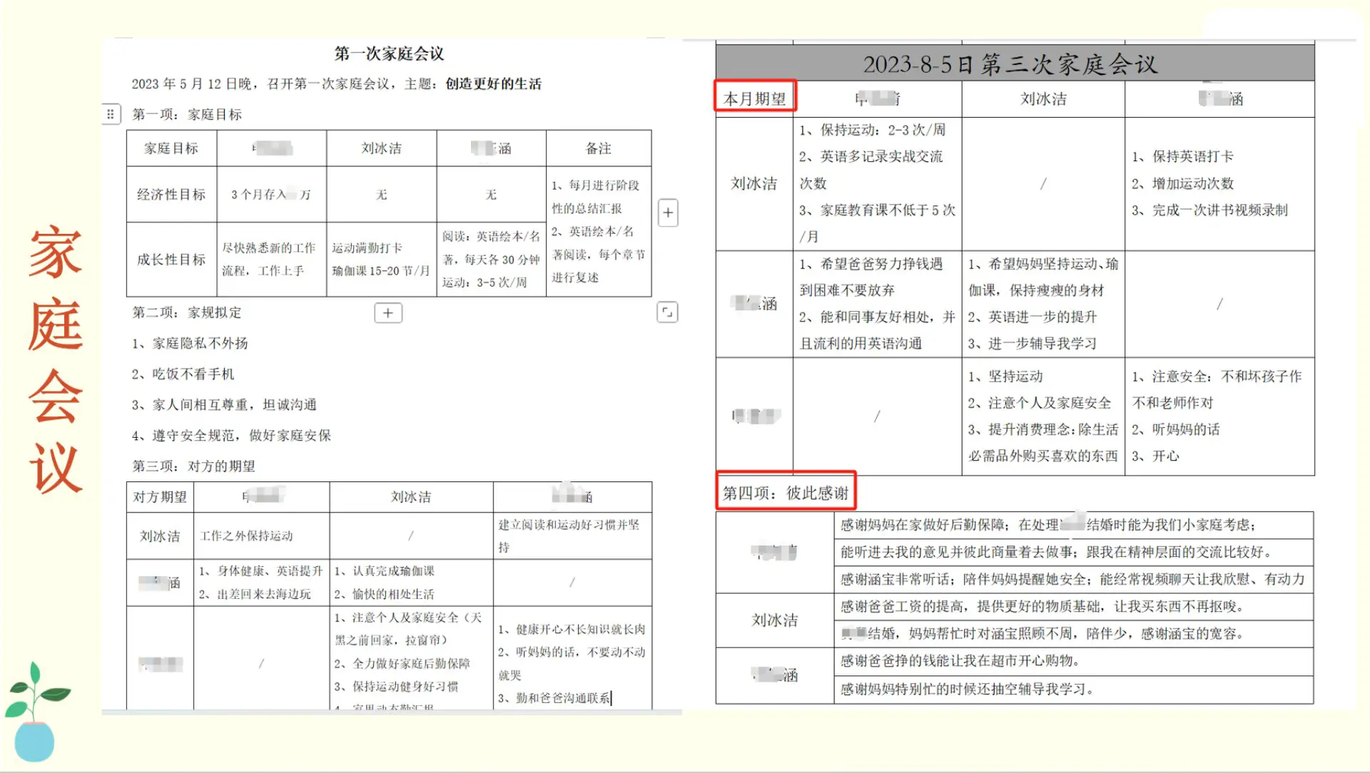 通过这次会议,我们明确了为创造更好的生活,每个家庭成员需要做出的努力。这个家突然就好像拧成了一股绳,朝着同一个方向使劲,目标感非常的强。