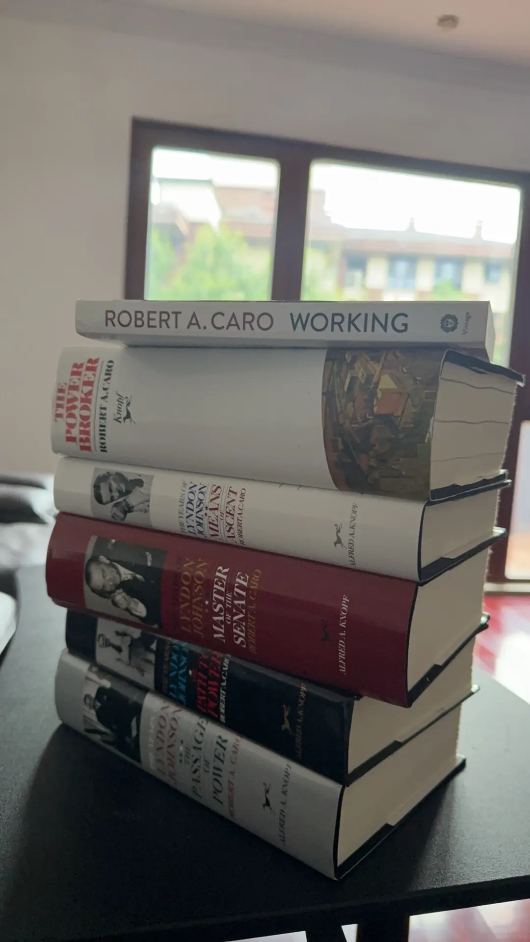 那么有AI的辅助的话呢啊我们在读书的时候能够获得以前我们没有办法获得的很多的信息。然我随便举一个例子啊,我最近呢在看一套特别厚的书,这个可能大家都知道啊,我最近在看这个ber的书啊,这个人呢一辈子就写了两个人的专记啊,一个呢是纽约的基建狂魔叫beres就罗伯特摩西啊,然后另外一个人呢就是美国的一个一任总统叫林donjohnsonjohnson啊,约翰逊。